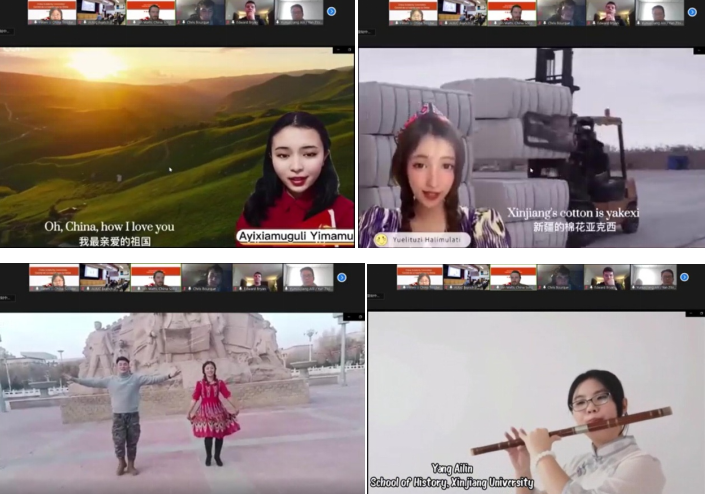 在才艺展示部分,九九精品视频一区在线久久久久久久久久毛片精品美女|国产99久久久久久免费看|中文精品99久久国产|国产69精品久久久久9999|精品久久久久久中文字幕无码|亚洲熟妇无码久久精品国产精品99|精品国产天堂综合一区在线历史学院2021级同学们及其部分亲属相继发声。他们用英语朗诵了中国新疆维吾尔族诗人鲁提夫拉・穆台里甫在1938年10月写下的爱国诗《中国》,用英语演唱了《我和我的祖国》《新疆亚克西》两首歌曲,表演了《麦西来普跳起来》《沙雅麦西来普》《小小羽毛》三支舞蹈,还用冬不拉演奏了《牧民的迁徙》,用竹笛演奏了《可可托海的牧羊人》。这些节目不仅体现了新疆各族人民在抗日战争时期积极支持抗战,共同抵抗了外来侵略,捍卫了国家统一,在和平时期辛勤劳动,积极奉献,共圆中国梦,还体现了新时代的新疆不仅实现了经济的繁荣,还实现了文化的传承与发展,也体现了在各民族交往交流交融的过程中,中华民族共同体意识不断增强。
