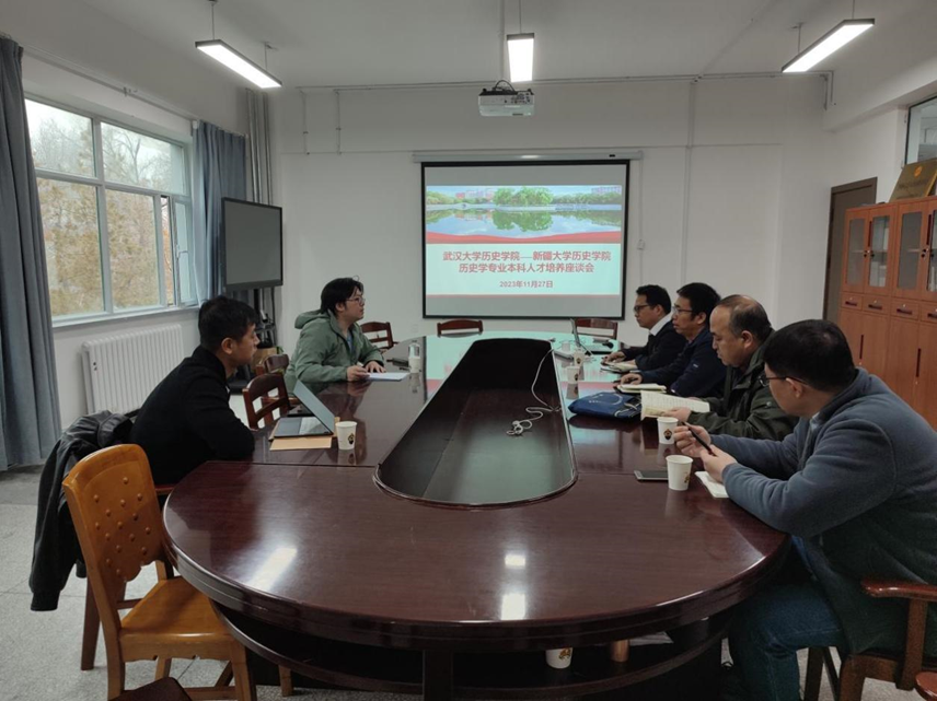 四场干货满满的座谈会。11月27日上午,由我校历史学院主管教学的副院长闫自兵主持,王萌教授、宋海超副教授与我校历史学院姜海龙副院长(对口支援)、热合木吐拉·艾山教授以及中国历史研究所所长武强副教授展开了座谈会。双方围绕历史学专业本科课程建设、国家级教学成果奖申报以及口述史理论与实践等问题,进行了深入交流。达成了共建一门中国近现代史课程、共享双方资源申报国家级教学成果奖、共同开展有组织的研究团队建设的诸多共识。下午,由我校历史学院副院长吴轶群、姜海龙主持,王萌教授、李洋副教授、宋海超副教授与我校历史学院新晋研究生导师开展研究生培养座谈会。武汉大学三位专家根据新疆地域特色以及我院研究生培养情况,有针对性地提出了诸多宝贵建议,如:建立完善的研究生培养方案、加强导师队伍建设、强化课程教育质量、完善激励机制以及加强科研能力培养等。参会双方就研究生培养工作进行了热烈讨论。